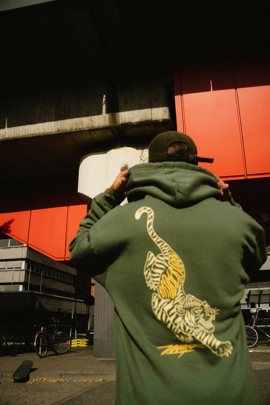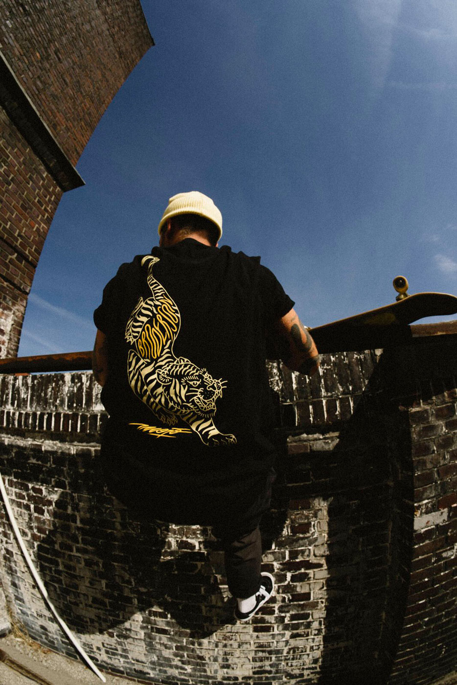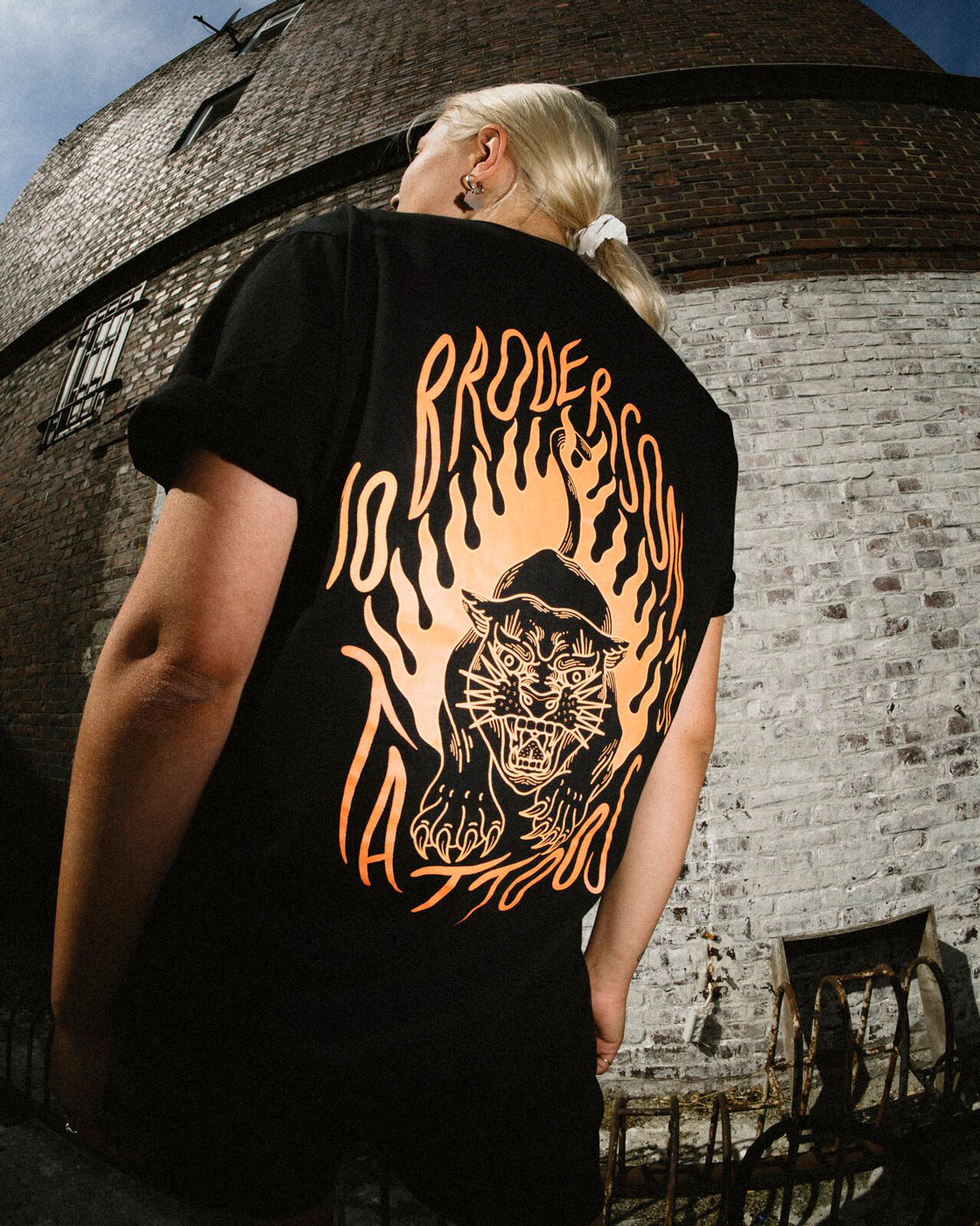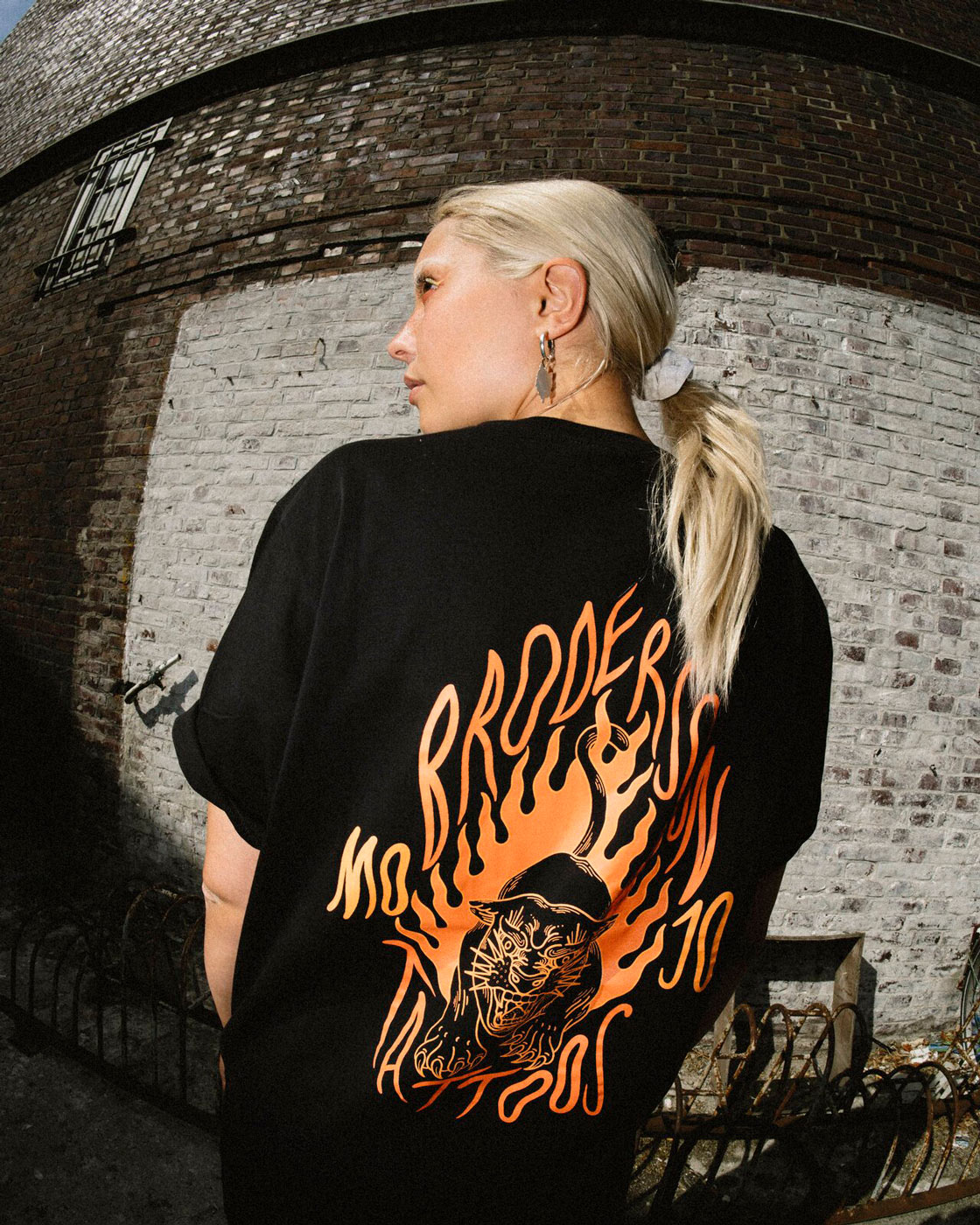 Mit guten Freunden Kollabos machen – Das macht mal so richtig Laune. Spätestens als Broder mit seinen Skizzen in den Store kam, war uns umso mehr klar: Diese Styles werden der Hit. Der großartige Hamburger Tattoo-Artist Broderson hat seine Großkatzen exklusiv auf Textil gebracht. Panther, Tiger & Leopard zieren die lässig geschnittenen Hoodies, Shirts und den Crewneck – Made in Portugal. Broder bringt mit seiner Kunst einen ganz neuen Style zu Mojo und Diesen solltet ihr euch auf keinen Fall entgehen lassen. Zudem lohnt sich natürlich auch ein Blick auf die tollen Arbeiten von Broder.