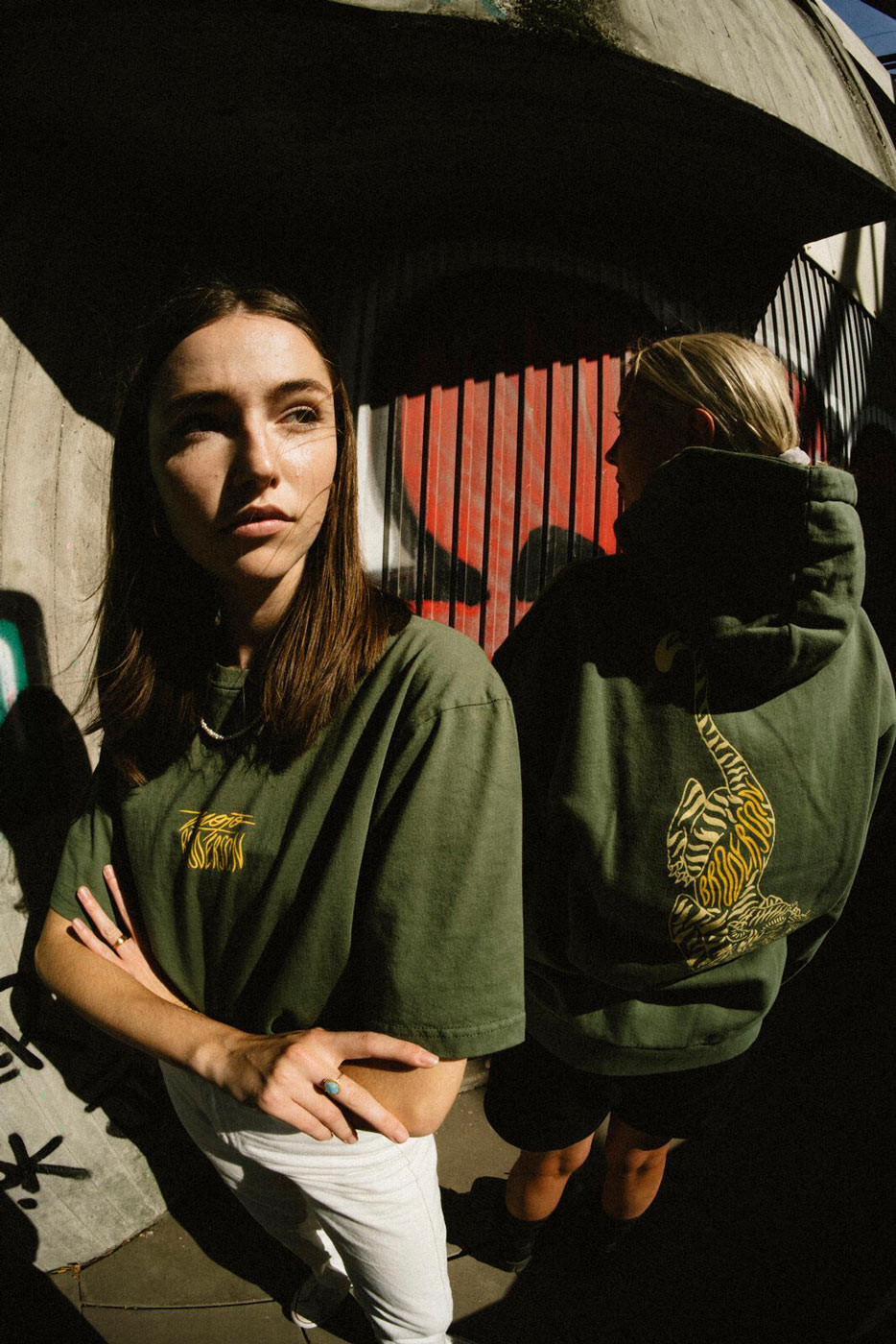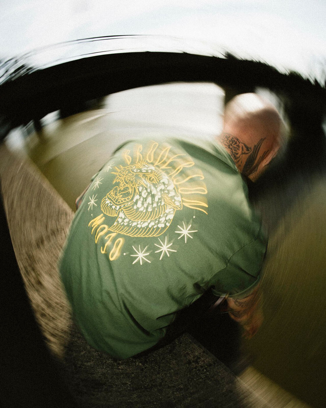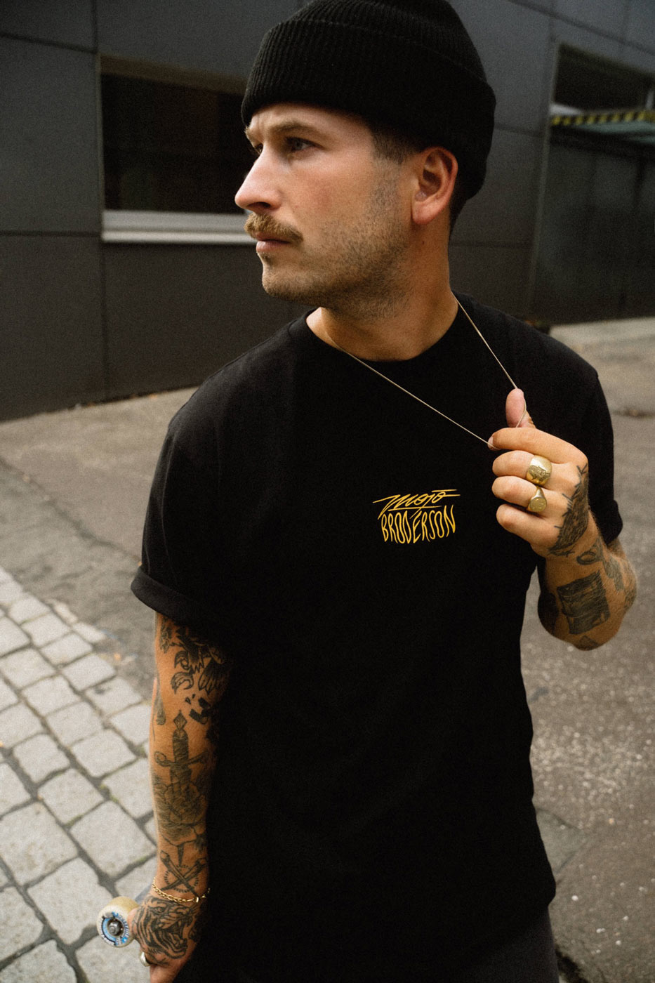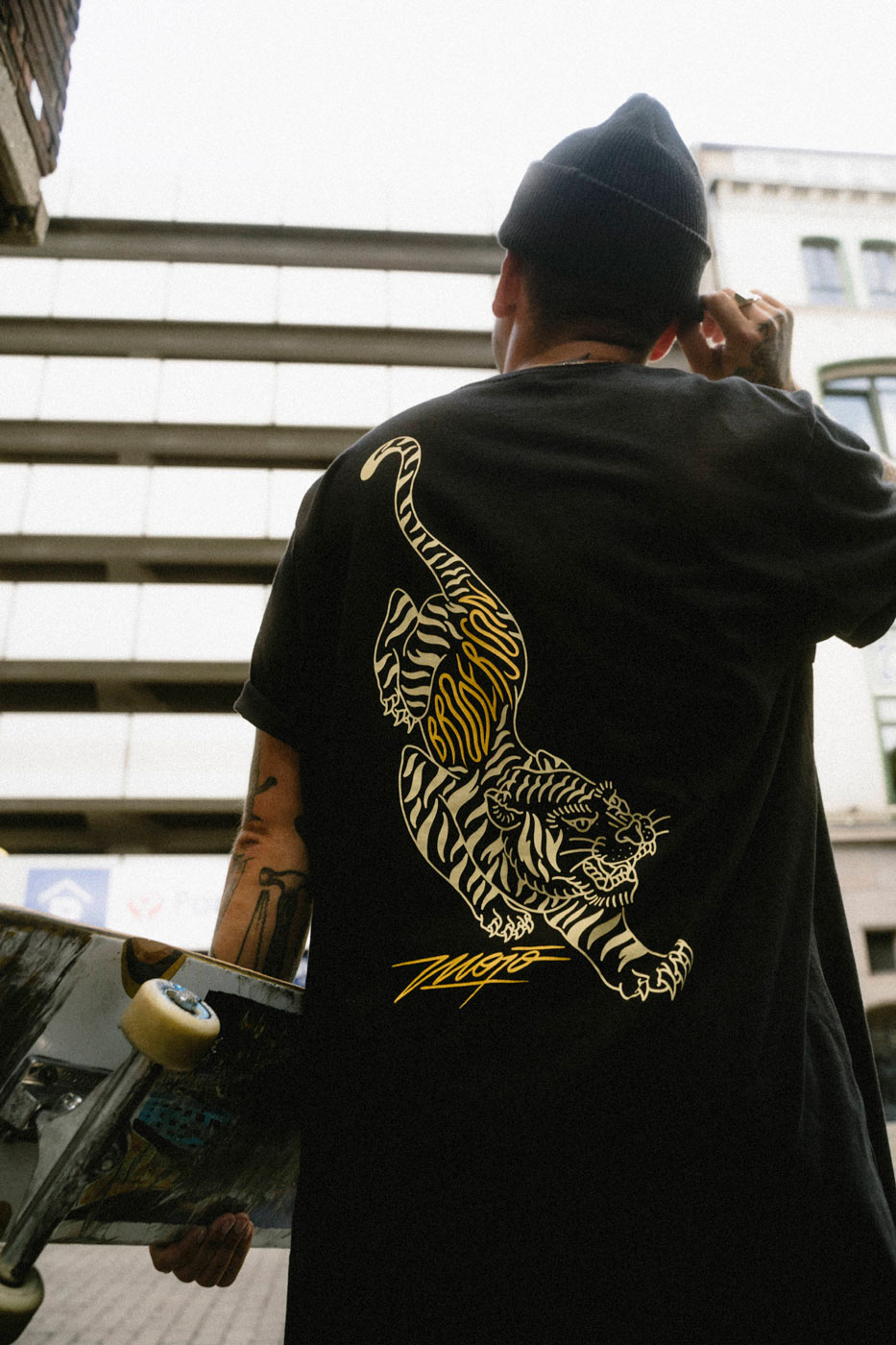 Mit guten Freunden Kollabos machen – Das macht mal so richtig Laune. Spätestens als Broder mit seinen Skizzen in den Store kam, war uns umso mehr klar: Diese Styles werden der Hit. Der großartige Hamburger Tattoo-Artist Broderson hat seine Großkatzen exklusiv auf Textil gebracht. Panther, Tiger & Leopard zieren die lässig geschnittenen Hoodies, Shirts und den Crewneck – Made in Portugal. Broder bringt mit seiner Kunst einen ganz neuen Style zu Mojo und Diesen solltet ihr euch auf keinen Fall entgehen lassen. Zudem lohnt sich natürlich auch ein Blick auf die tollen Arbeiten von Broder.