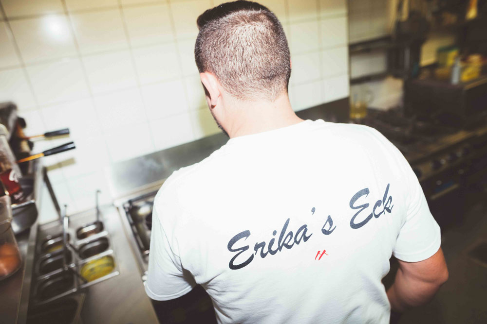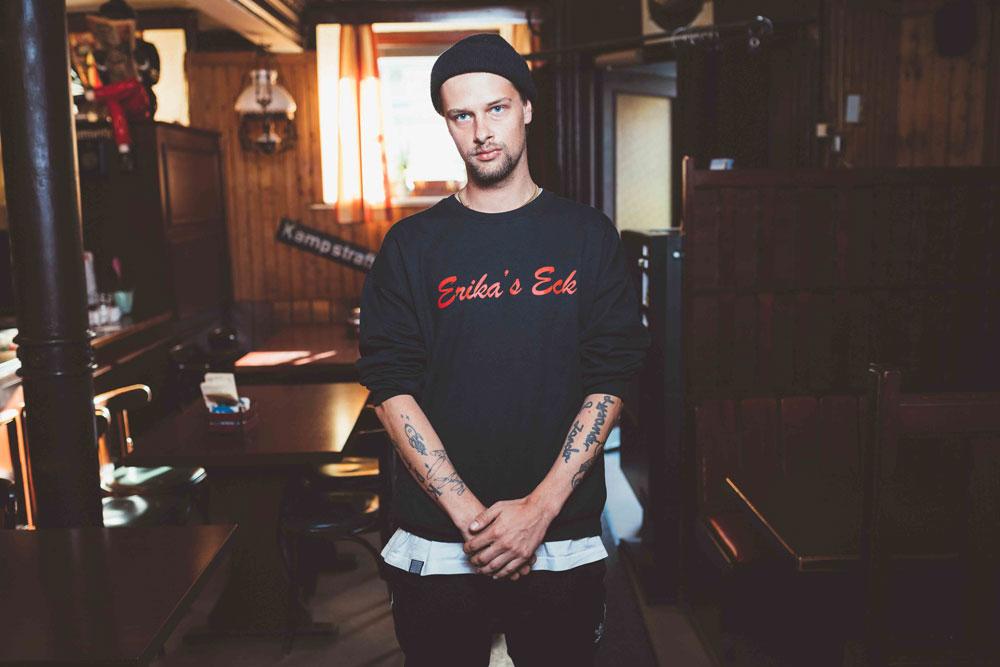 Die Idee kam uns bei einem Feierabendbierchen auf der Bank vorm Mojo Store – Wie schön wäre es bitte ein T-Shirt mit dem Erika ́s Eck Logo zu besitzen. Gesagt, getan. Nach sehr netten Gesprächen mit dem Besitzer des Hamburger Kultladens kam es zu der Kollabo des Jahres – Mojo macht gemeinsame Sache mit Erika ́s Eck. Wer schon mal Hamburg war, kommt an den Mettbrötchen oder die leckeren Schnitzel bei Erika nicht vorbei. Hier trifft sich jung- und alt und Jede/r ist willkommen. Es schmeckt einfach wahnsinnig lecker – Authentisch, rustikal und gut bürgerlich. Mit unserem Nachbar in der Sternschanze machen wir mit Mojo jetzt auf Mode und es gibt die erste und limitierte Mojo x Erika´s Eck Capsule Collection zu kaufen. Unter dem Motto Respect your Neighborhood gibt es jetzt Shirts und Sweater im klassischem Erika-Look. Ob mit Mettbrötchen-Patch oder mit der legendären Speisekarte als Backprint gibt es alle Styles streng limitiert zu kaufen. Die Fotos kommen von Valentin Ammon und das Design vom wunderbaren Designer und Freund des Hauses Christian Huck. Danke an Alle für diese großartige Geschichte – Fortsetzung folgt.