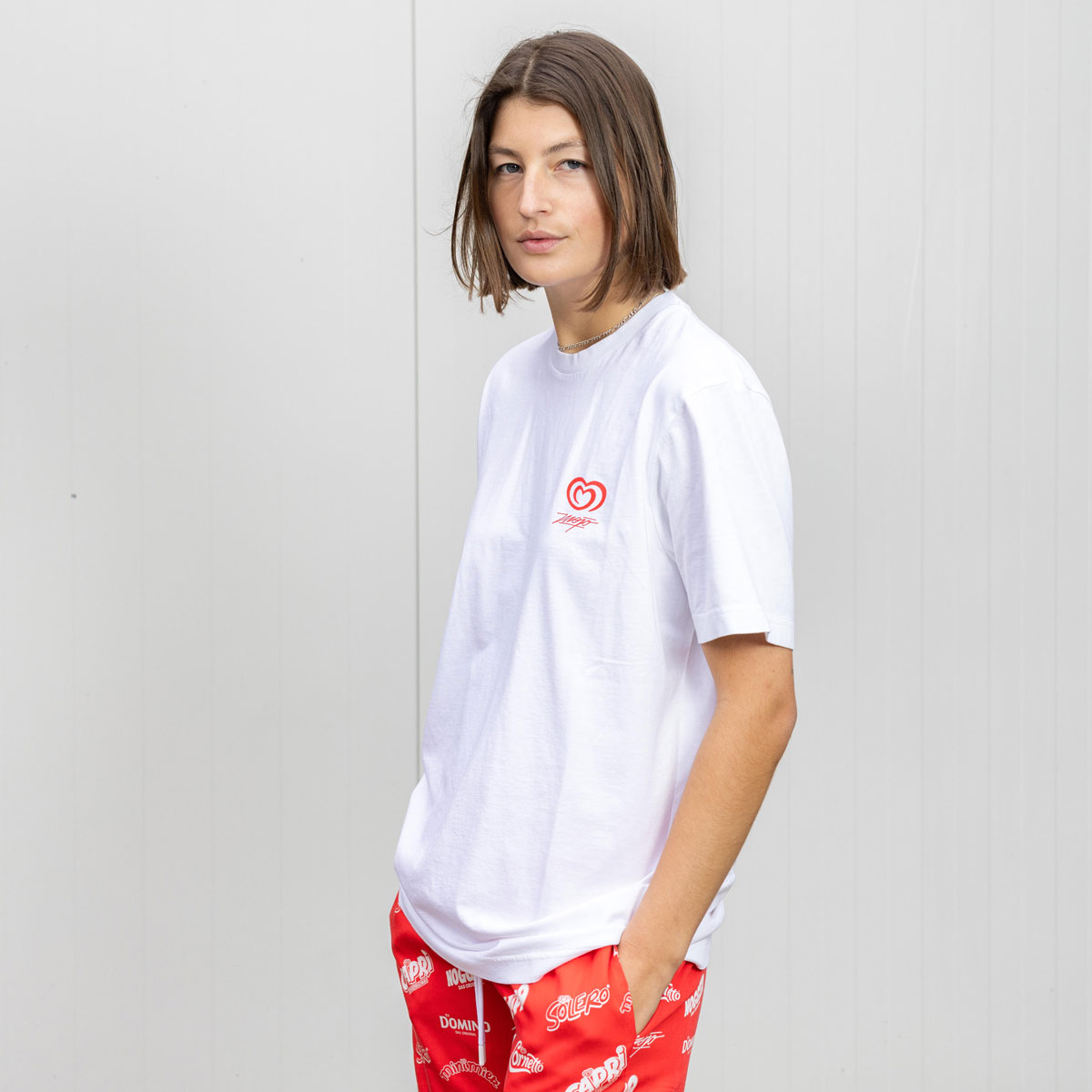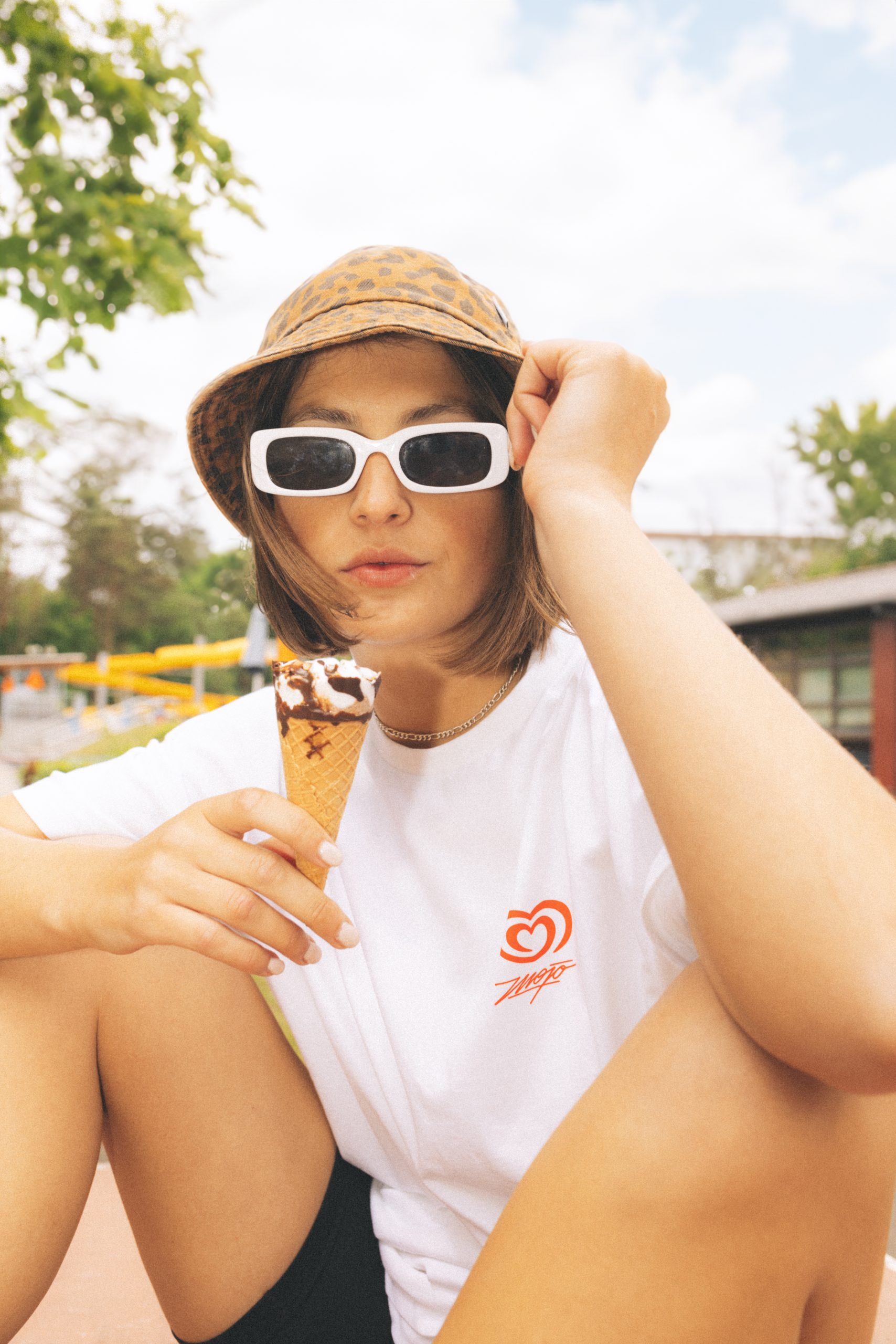 Das ist bei dem Drop aber nicht alles gewesen. Jeder hat sein Lieblingseis und dafür haben wir unsere nicen Flavour-Shirts. Vorne kleiner Logo Print mit dem Kombilogo und hinten als fetter Backprint dein Liebling aus der Langnesekiste – von Flutschfinger, über Twister bis hin zum Cornetto. Alles mit am Start. Der nächste Sommer kann kommen.