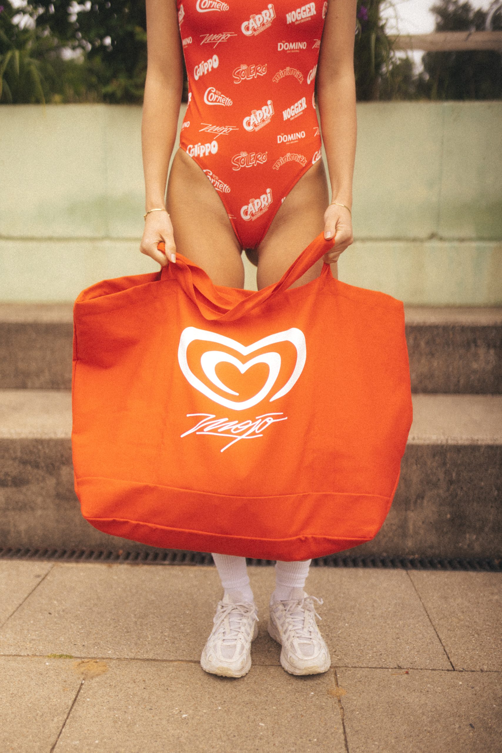 Like Ice in the Sunshine – der Sommerdrop des Jahres 2023 mit Langnese x Mojo. Die Besten Pieces für an den Strand. Die Beachbag ist vollgepackt mit ganz vielen Sachen. Badeanzug, Badehose, Hemd mit allen Logos der beliebtesten Eis-Sorten, der Rainbow Hoodie und ein Crop Top. Gut verstaut in der Mojo Beachbag mit Unmengen an Platz.