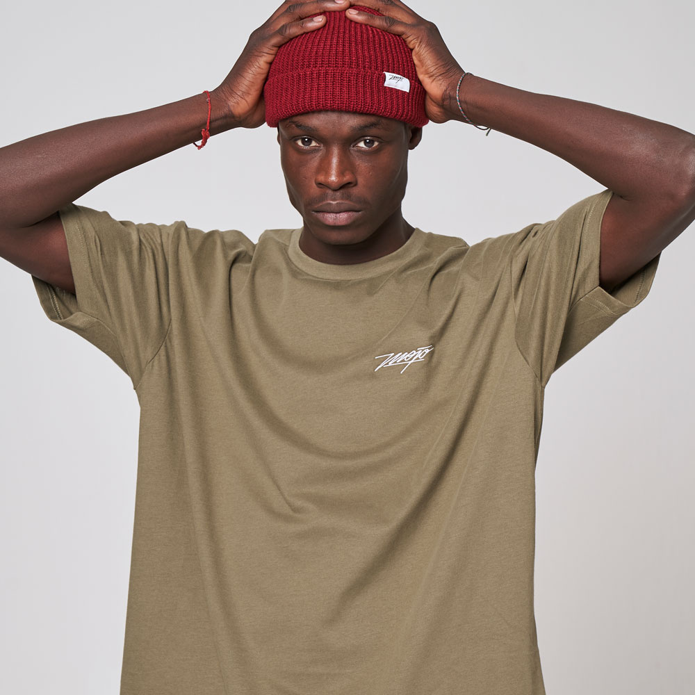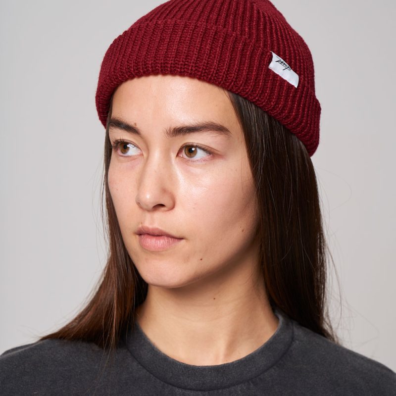 Kurze Grobstrick-Beanie mit kleinem Mojo-Aufnäher Must-Have mit Krempe.