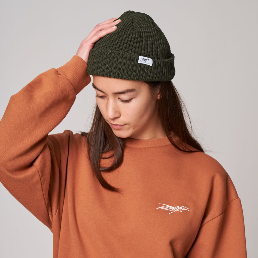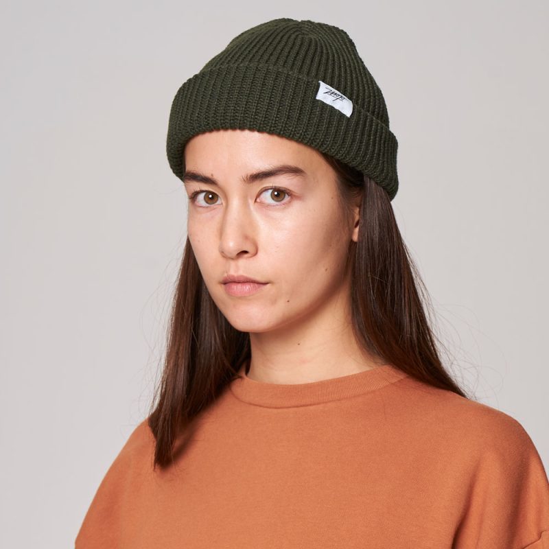 Kurze Grobstrick-Beanie mit kleinem Mojo-Aufnäher Must-Have mit Krempe.