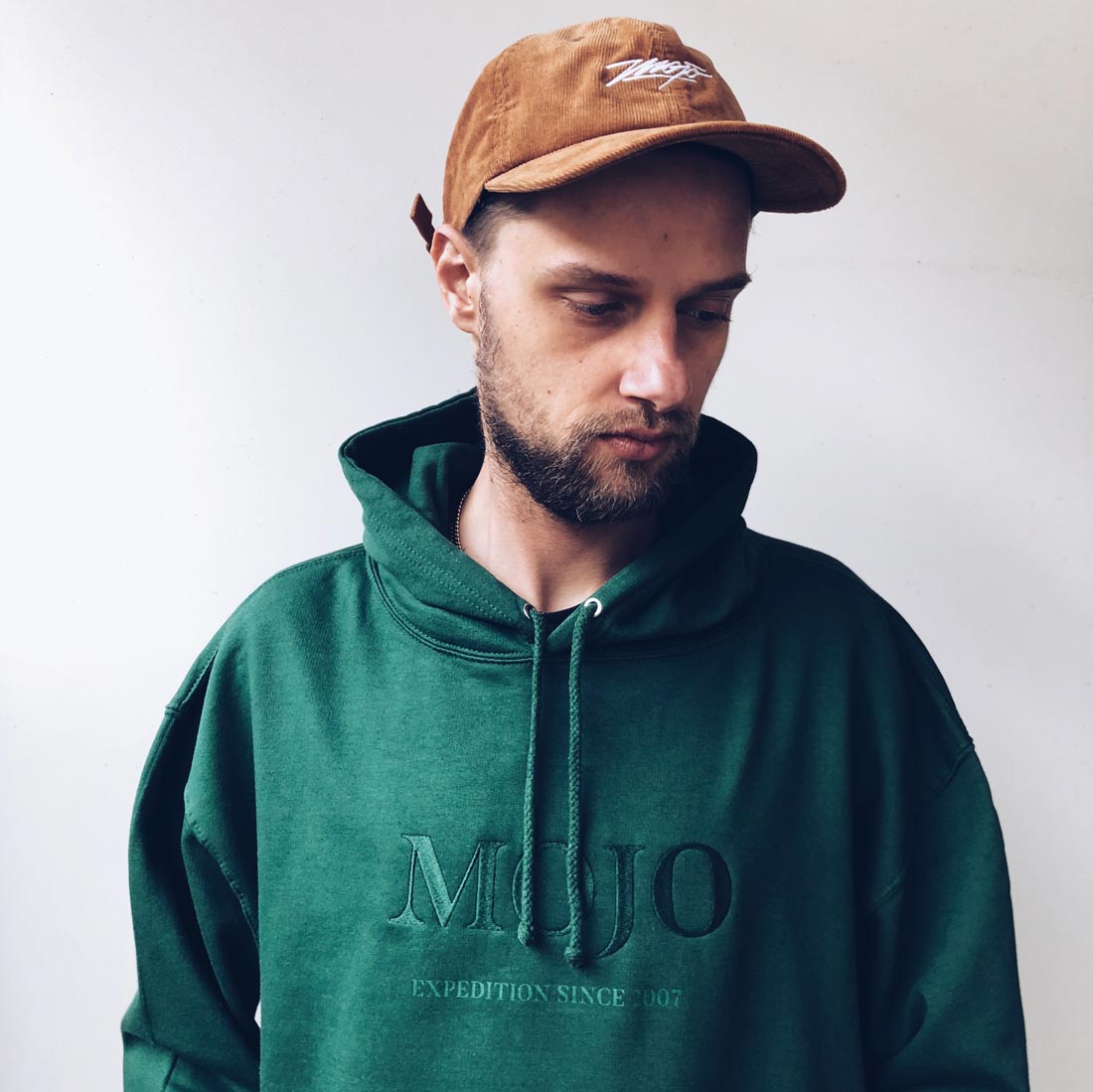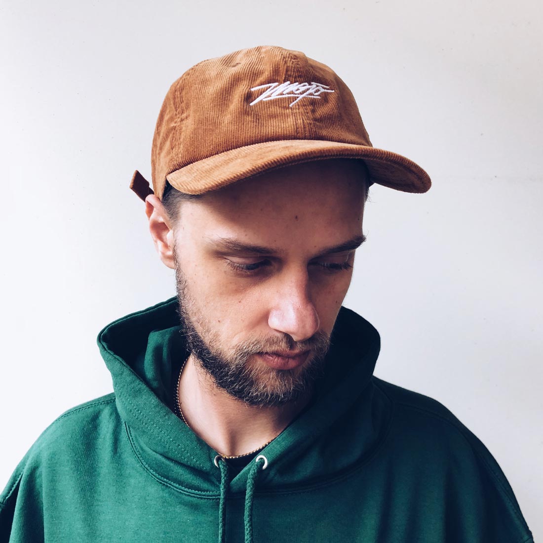 Sehr schöne Cord-Cap in camel mit feinem Mojo-Stick in weiss.