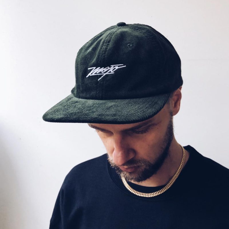 Sehr schöne Cord-Cap in dark green mit feinem Mojo-Stick in weiss.