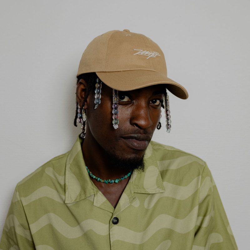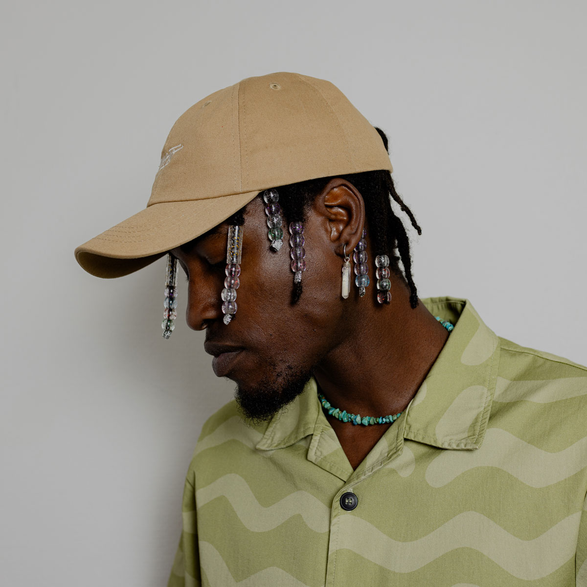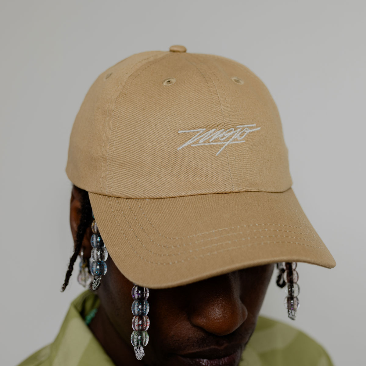 Feine braune Dad Cap mit feinem Mojo-Stick in beige.