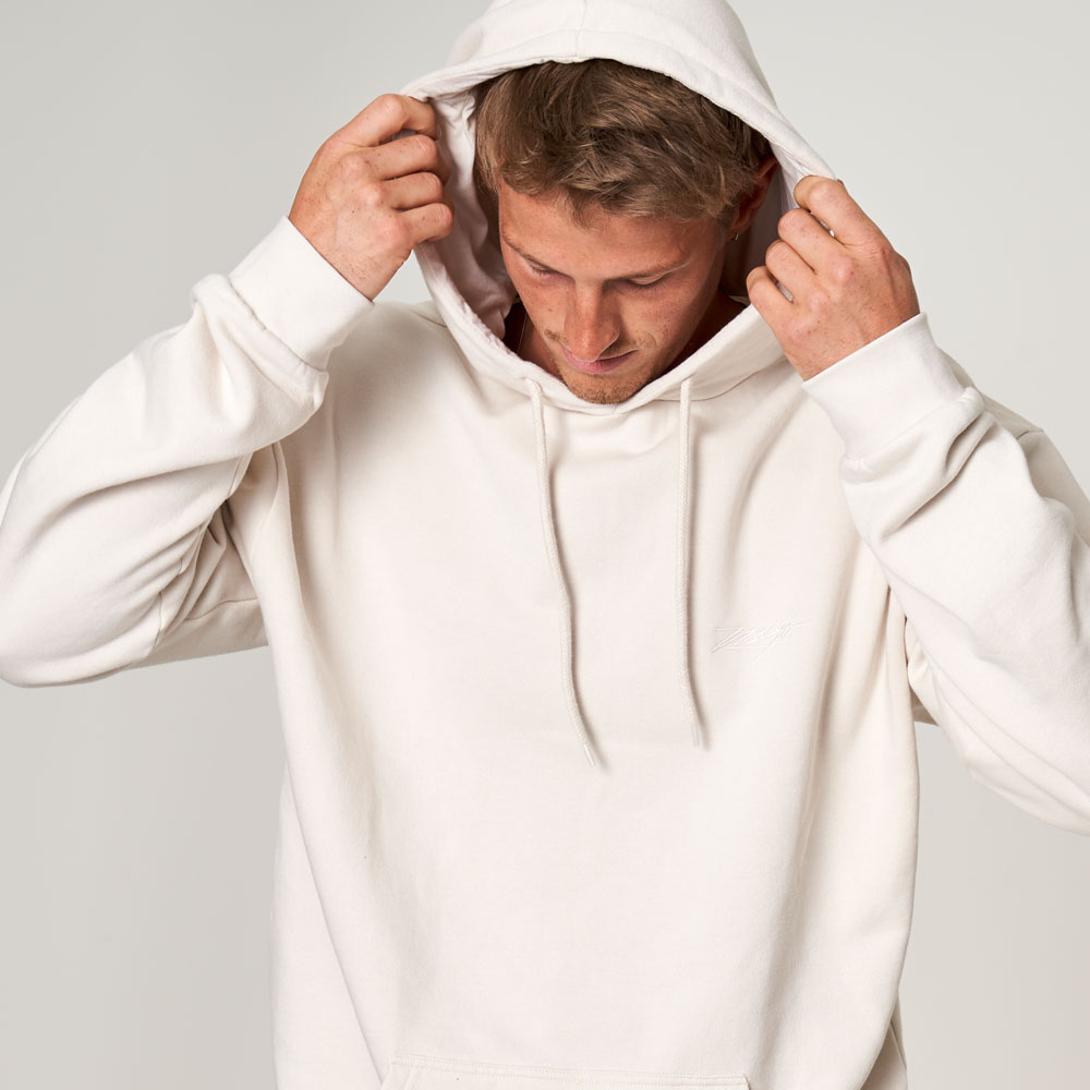 Mehr cozyness geht nicht – Der gemütliche Hoodie All Cream kommt ganz clean mit kleinem Mojo-Stick Ton-in-Ton in creme.Der Fit vom Hooded ist oversized.