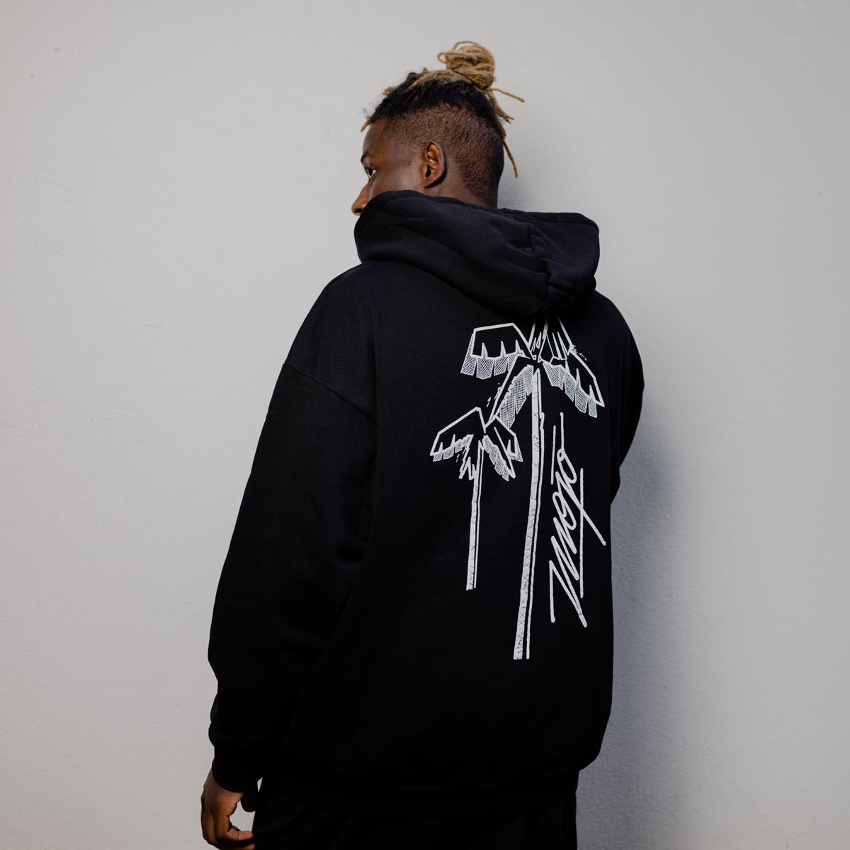 Der schwarze Oversized-Hoodie Palms ist ein echtes Hamburger Original. Den Fit kennt ihr von unserer ersten fritz-kola x mojo Collabo. 100% heavy Cotton und ein weiter Schnitt machen diesen Hooded zum absoluten Fashion-Item. Vorn ganz classy mit fritz-Type und hinten die Palmen aus Plastik.