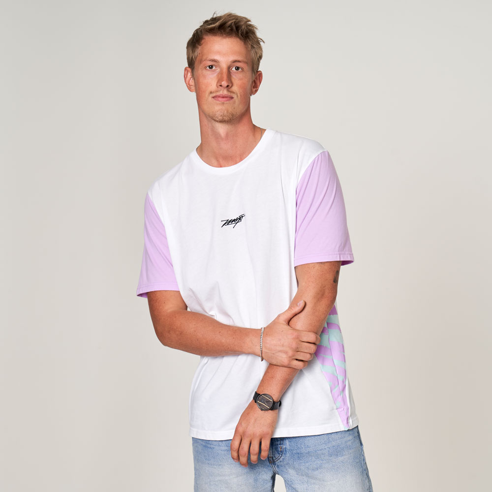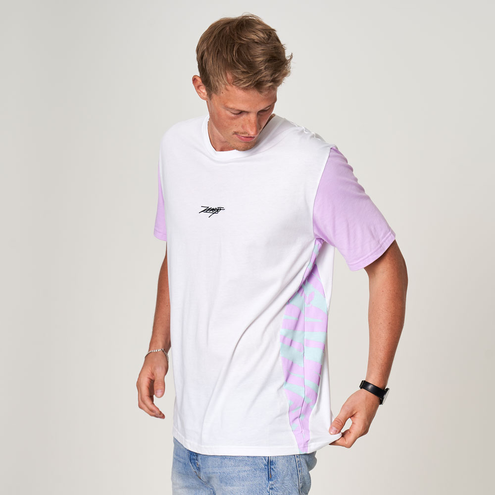 Das Shirt Steffi kommt ganz im Stile der 90´s Sportswear. Das Pattern der Saison an den Seiten kombiniert mit den Farben des Sommers. Kleiner Mojo-Stick auf der Front und diverse Details machen das T zum echten Hingucker.