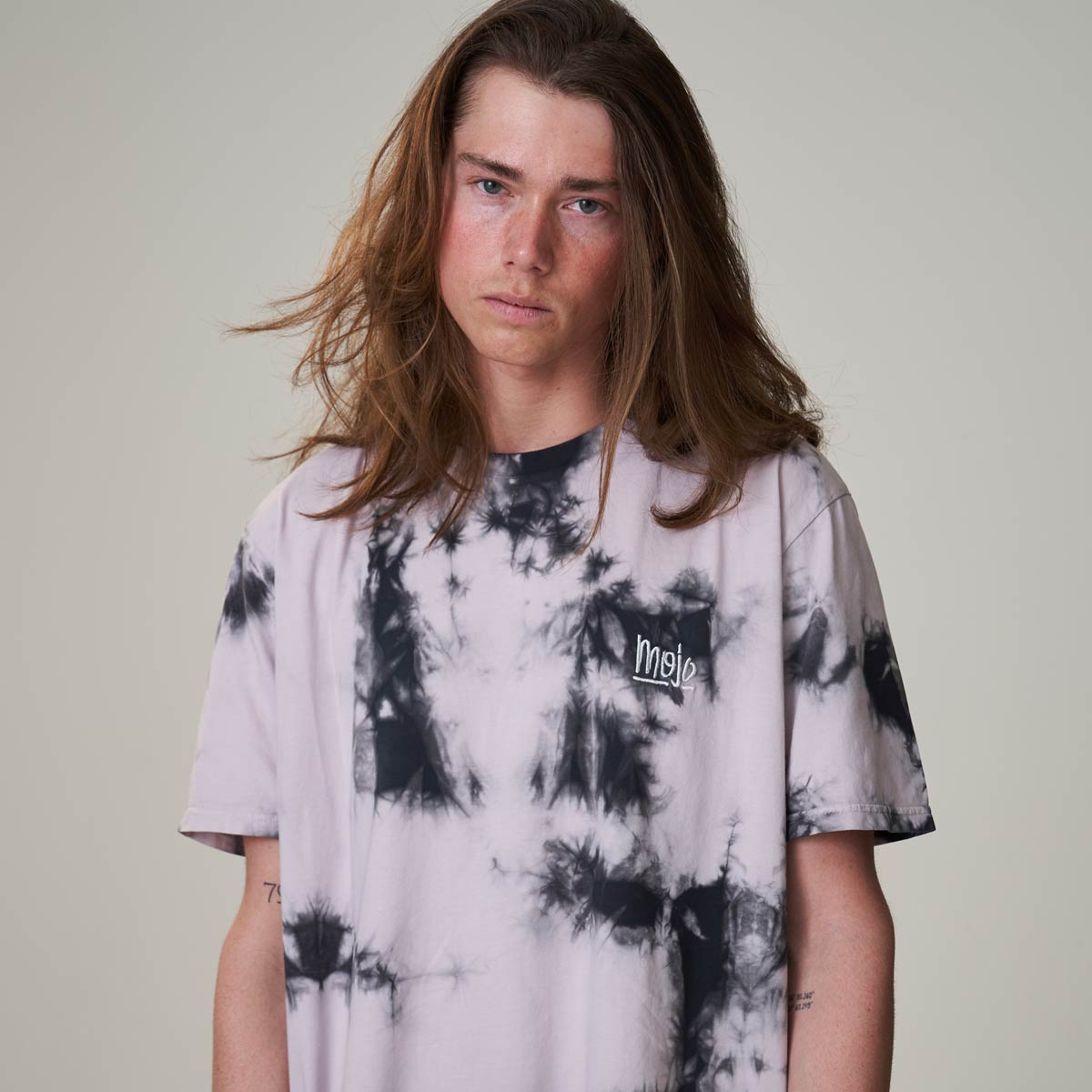 Mojo Summer – Das Acid-Washed Shirt Trip kombiniert die Colors Vintage black & Rosé. Zudem gibt es den kleinen Mojo Type gestickt in weiss – Special: Jedes Shirt ist individuell!