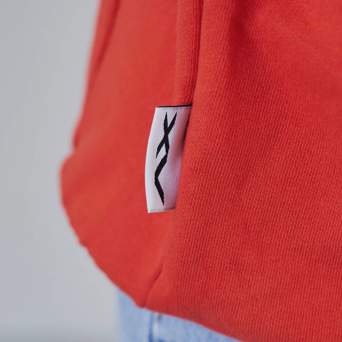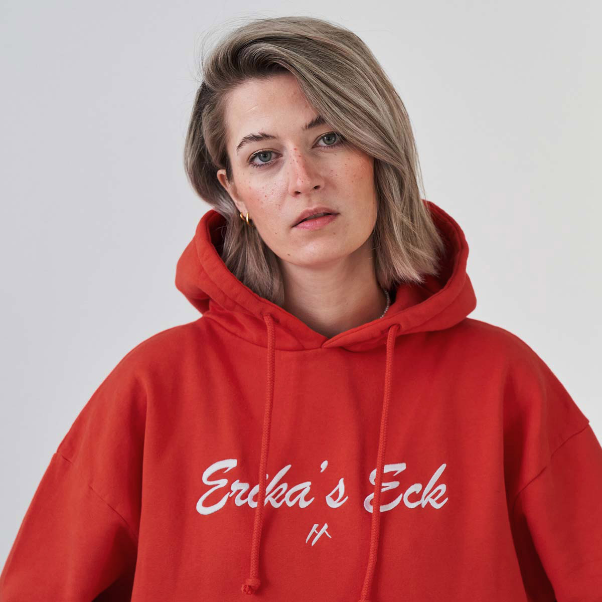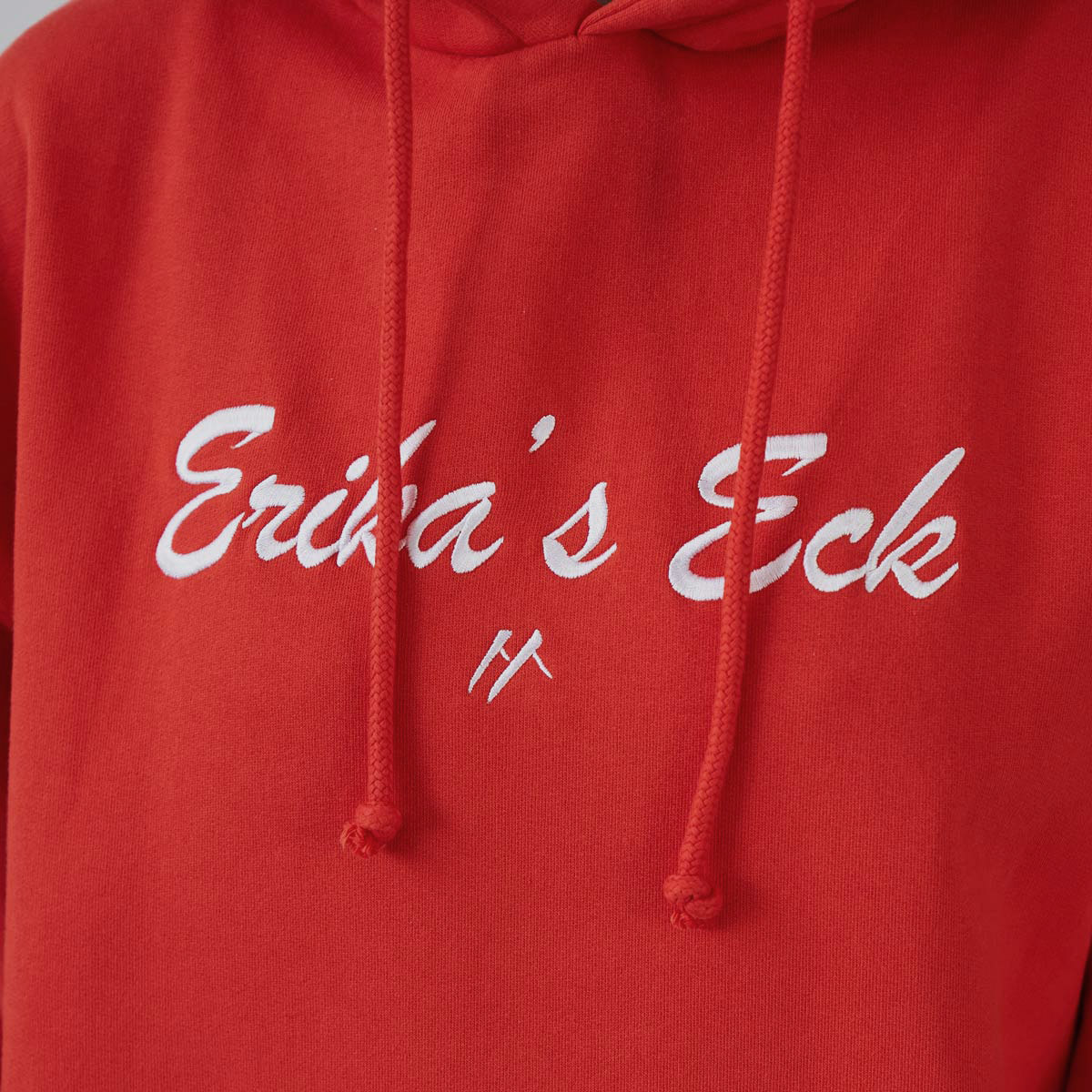 Sicher dir schnell den Erika´s Eck x Mojo Trinkgeld Hood – Hier ganz classy in Erika-Rot mit unseren Logos als Stick.