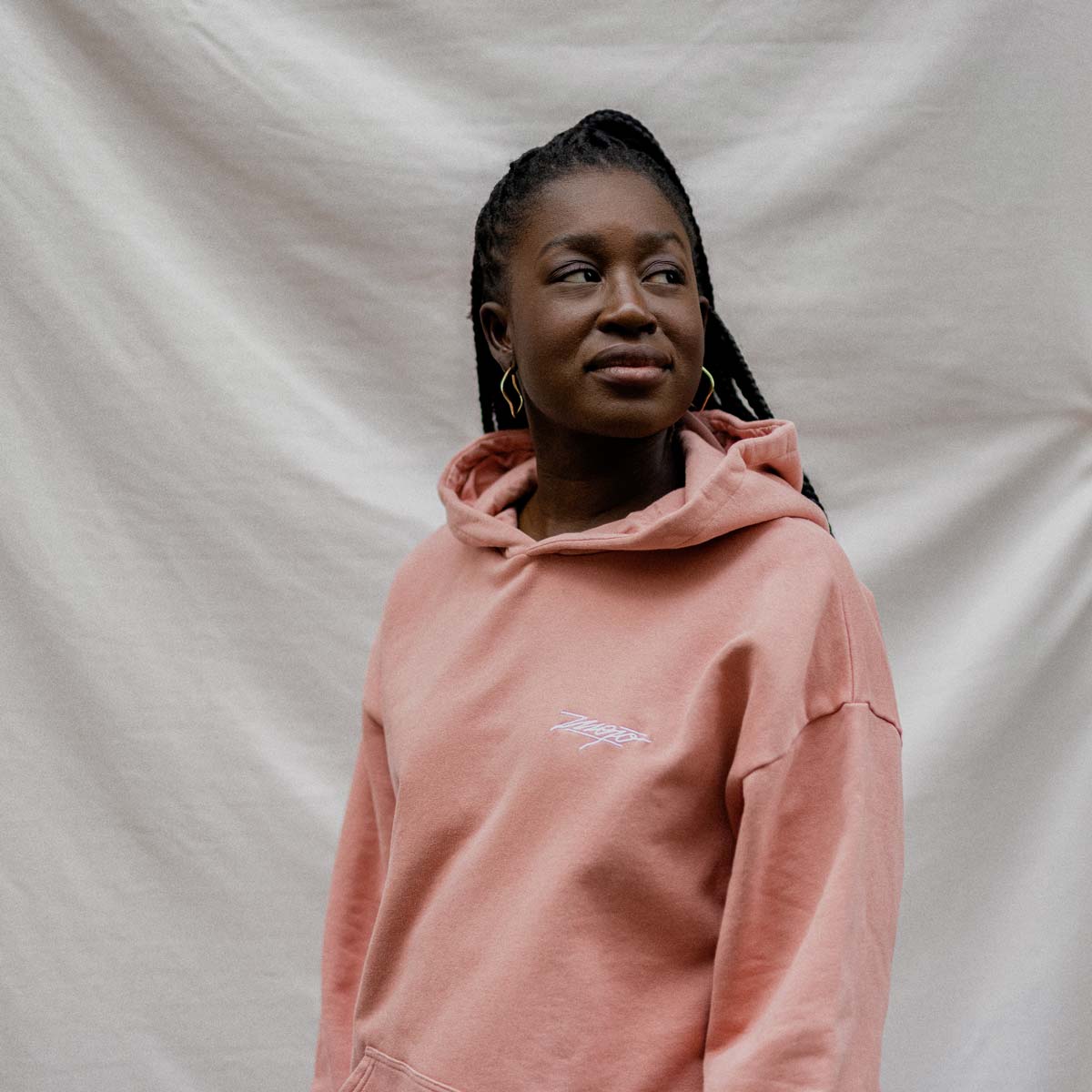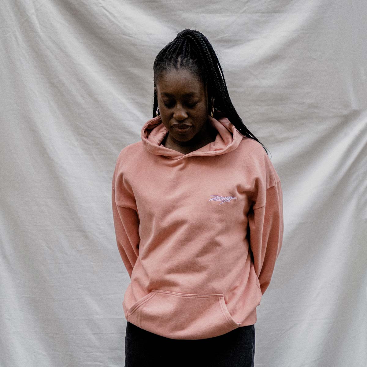 Der ultraweiche Hoodie ist weiter & overshoulder geschnitten als normal, kommt mit fetter Kapuze und ohne Bändel.