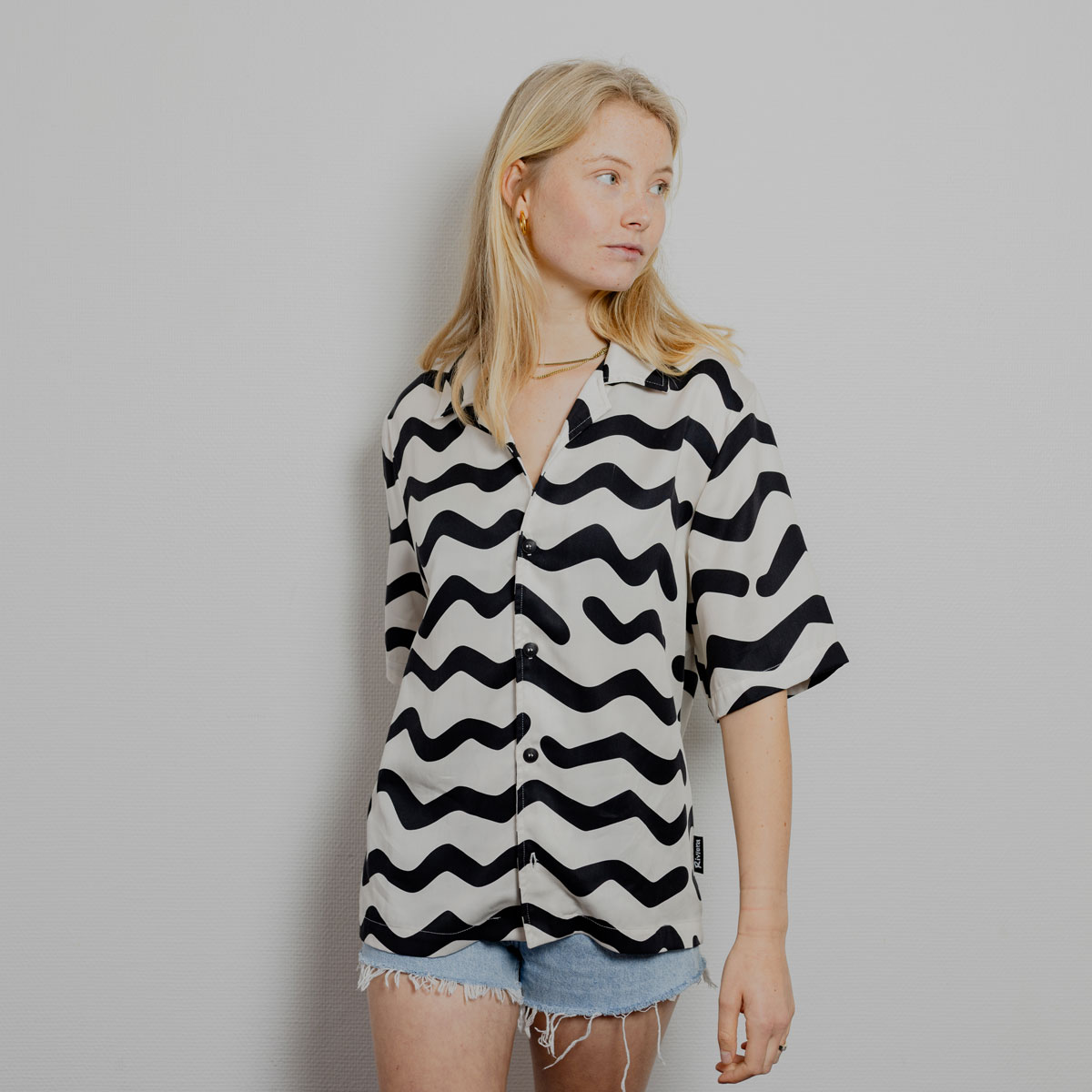 Ein Hemd wie ein Ölgemälde – Das Resort Shirt mit Reversekragen kommt in Off/Black mit Riviera Alloverpattern und schwarzen Knöpfen. Für einen angenehmen Tragekomfort ist diesen Kurzarmhemd aus 100% Tencel Lyocell.