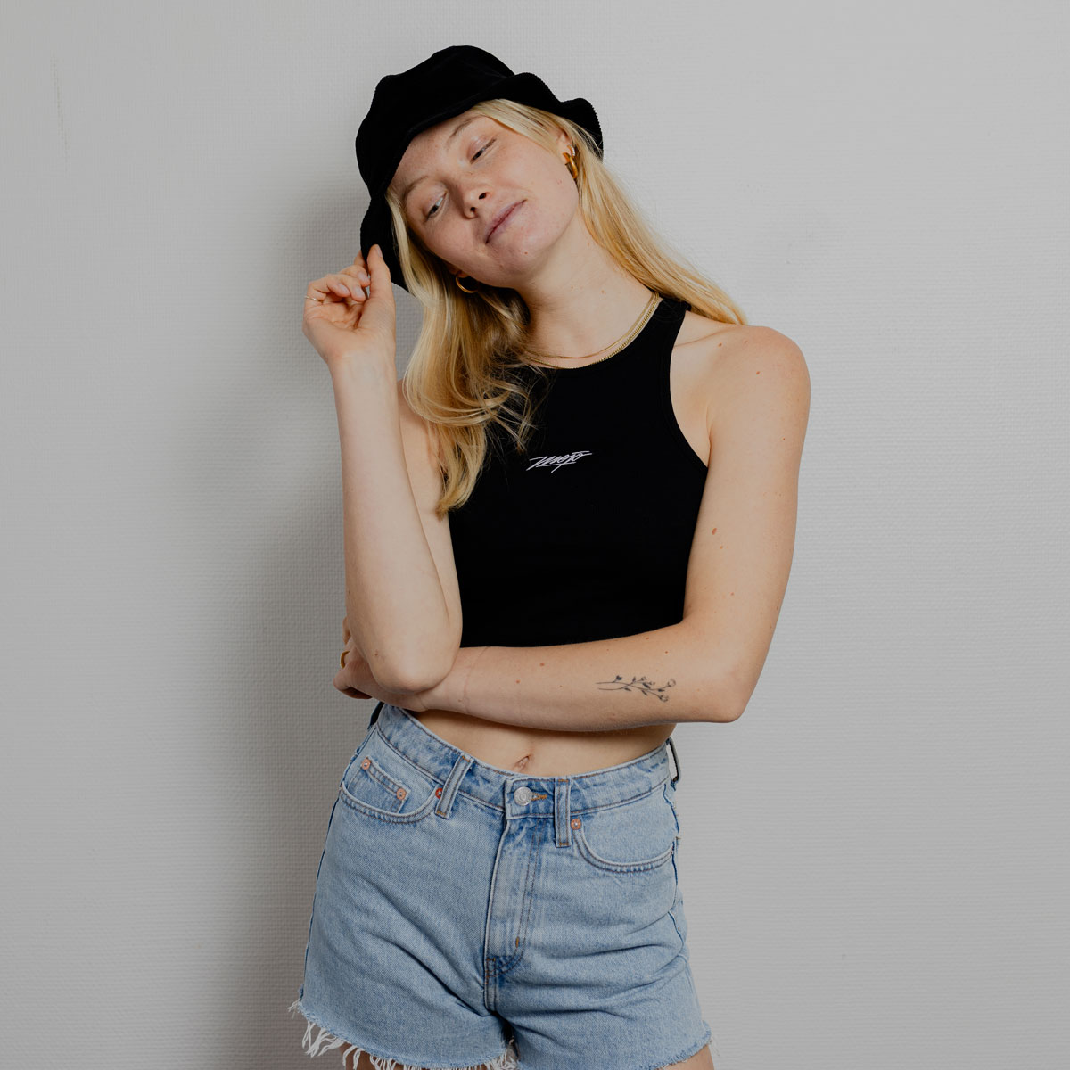 Stylisches Ripped Crop Top mit feinem Mojo Stick in weiss – Dieses Piece passt perfekt zu einer kurzen Pants oder High Waist.
