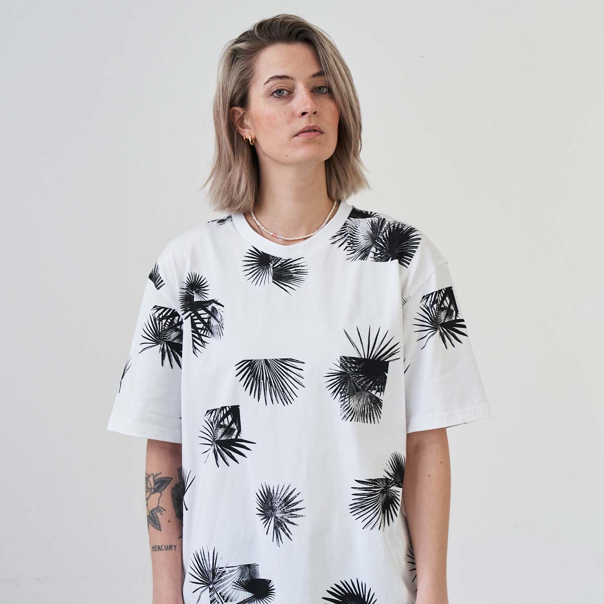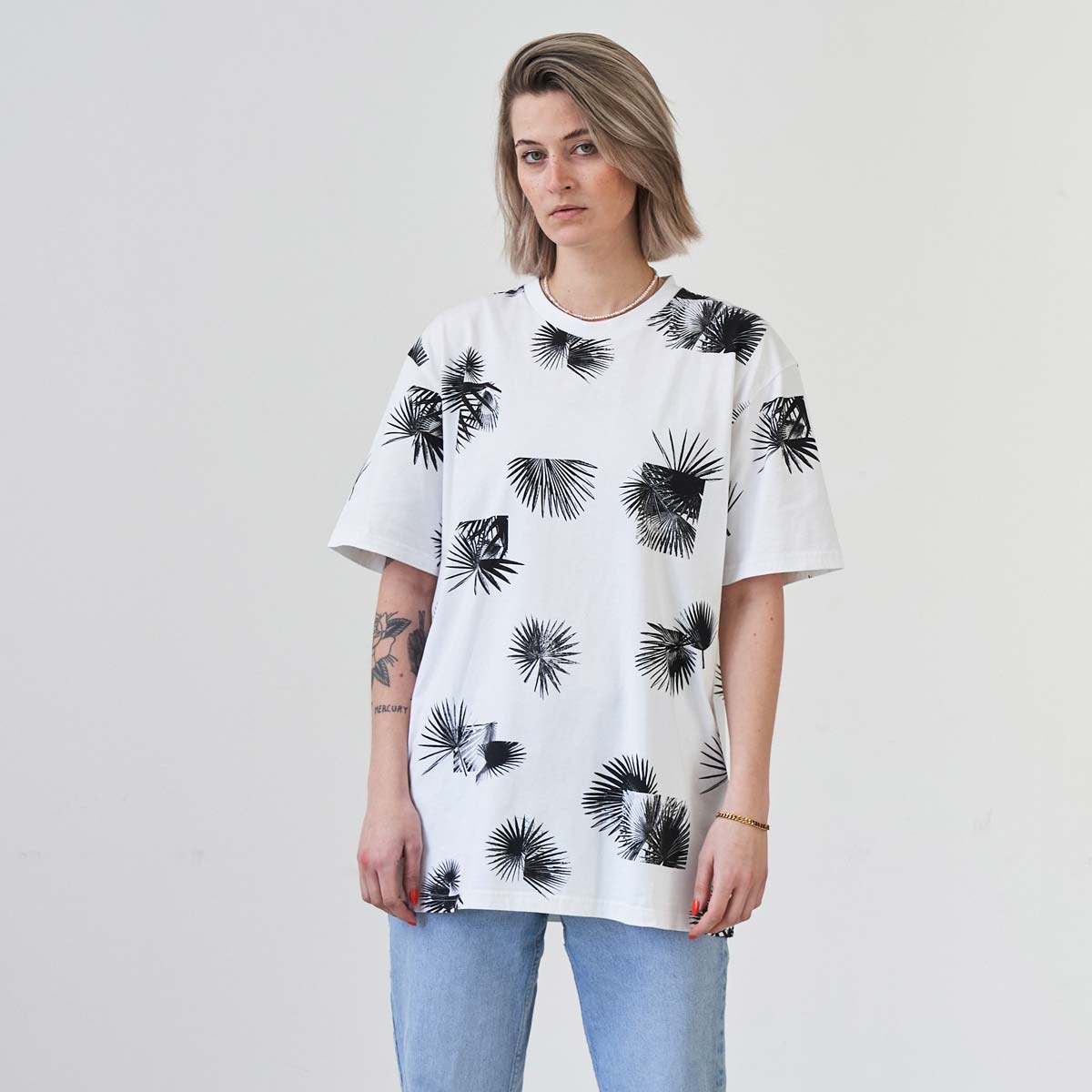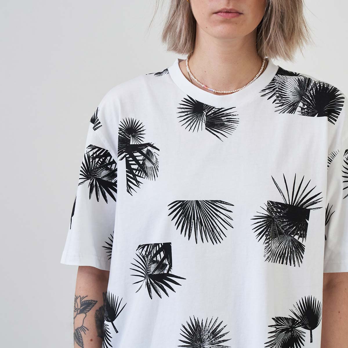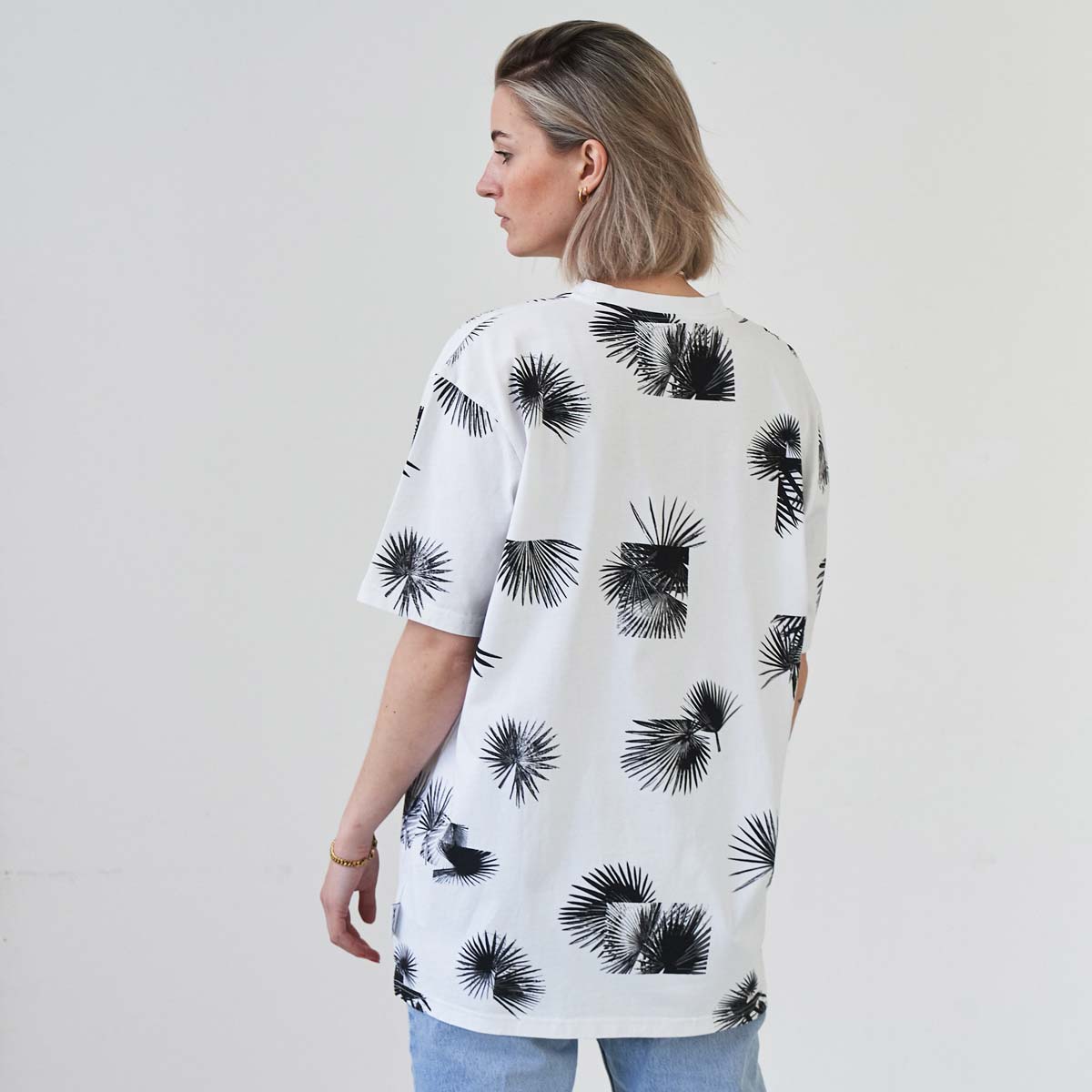 Sicher dir schnell das Bismarckia Nobilis Shirt in weiss mit dem Allover Print der einzigartigen Palmenmark aus Madagaskar