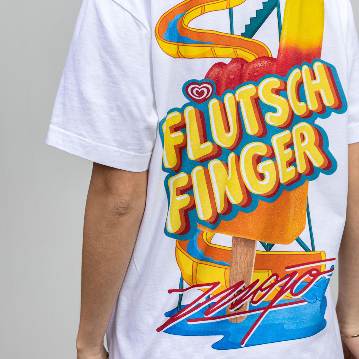 Die Langnese Top 10 als einzigartige Flavor-Shirts. Hier für euch ein Klassiker – Flutschfinger.