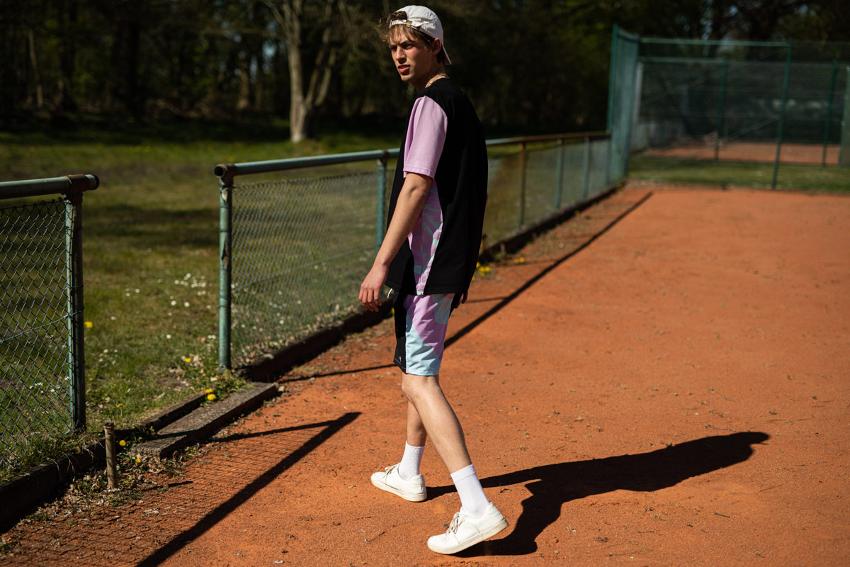Angelehnt an die großartigen Tennis Styles der 90er Jahre haben einen Sommerdrop in Portugal gezaubert. Das Shirt Steffi und der Hoodie Gabriela kommt mit trendigen Allover-Pattern Inserts. Zudem gibt es unseren ersten Swimsuit und zwei Beach-Shorts. Crewneck und Hoodie Deuce kommen ganz classy im Mojo Colorblocking. Abgerundet wird der Tennis Court Drop mit dem Hood + Crew Ivan inklusive Mojo Holiday Badge auf der Brust. Dickes Merci an unseren Freund und Kupferstecher Walter Wim Glöckle für die tollen Bilder, Tessa Münchow fürs Styling und Simone und Bene fürs Tennis spielen. Dieser Drop ist definitiv unter unseren Favoriten.
