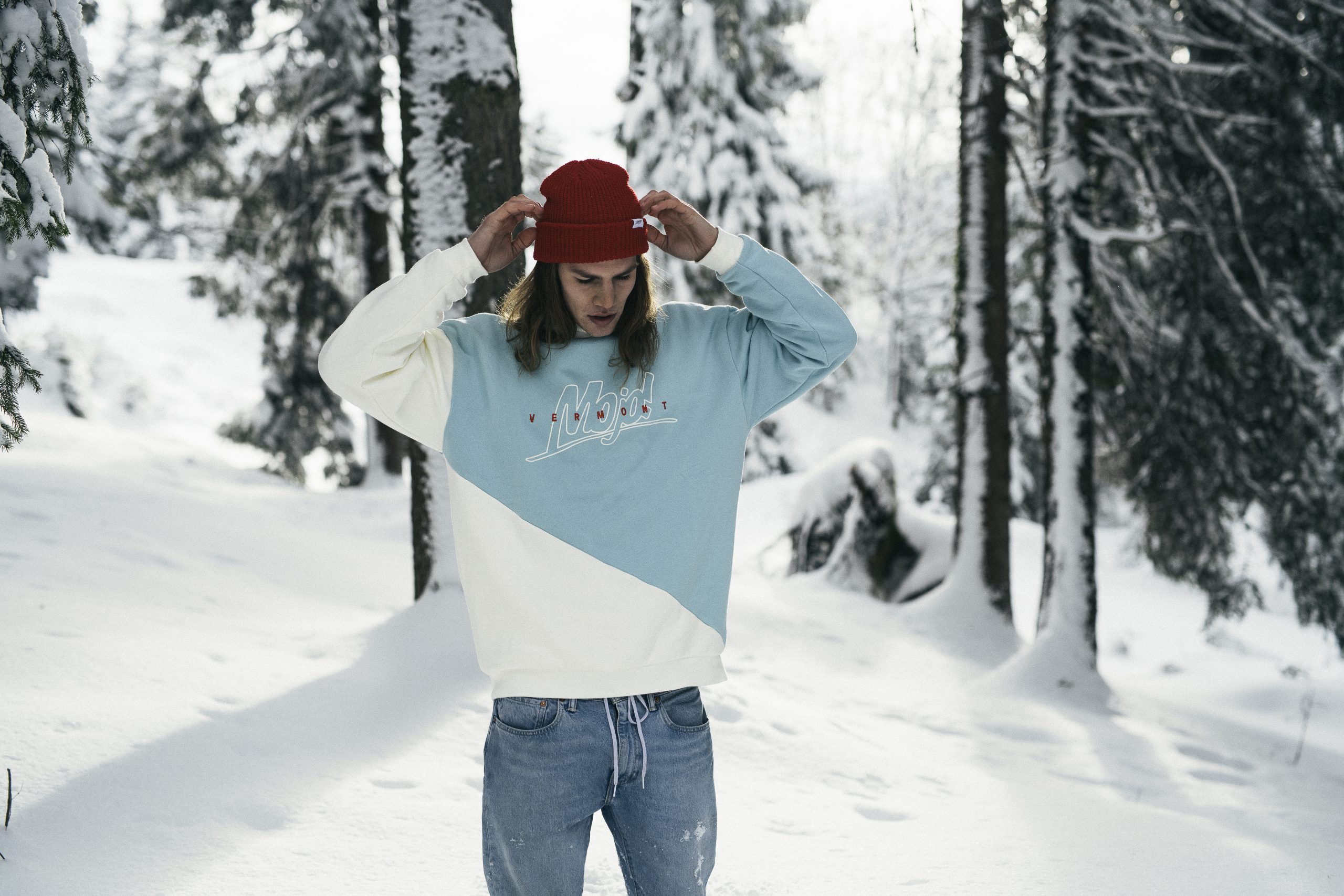 Vermont Calling – Mojo back to the roots – it is Mojo Snowboarding – zumindest fühlt es sich so an. Im Winter geht es ab auf die Piste – was da nicht fehlen darf. Der Hood für den Spaß. Kühle Töne und kaltes blau – egal ob Salzburg, Aspen oder halt Vermont. Die perfekte Jahreszeit für warme Hoods und Crews. Eine Kombi mit Beanies oder Stirnbändern rundet die ganze Sache auch noch ab.